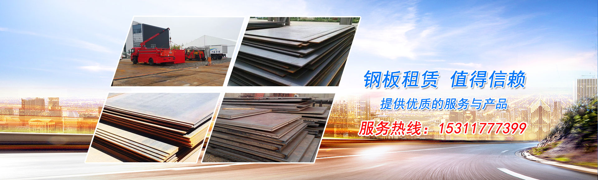 本公司现有各种类型类铺路钢板租赁物资万余吨及各类建筑设备。本公司所提供的租赁物资已经过技术监督部门的检验. 经过多年的经营,能为顾客提供快捷、方便、安全、可靠的优质产品和满意的服务。在同行业中享有较高的声誉,在全国多项工业与民用建筑及城市立交工程中得到广泛使用。